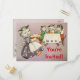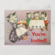 A mother cat carries a pie towards a table of three anxious kittens. This postcard invitation is customisable for any party or occasion that you might be planning. Just add your event details on the back!