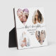 This trendy, and elegant photo plaque featuring an elegant white background and 4 heart shaped photos will make a great mother and daughter gift for Mother's Day, for your parent's anniversary, or your mum's birthday. The design also includes "mother & daughter" designed in a modern black script calligraphy with heart shaped details and includes custom space to add your names.