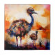 Cheerful emu mother and chick in dry dusty outback Australia. This image is rendered in digital inks and colorwash with the help of ai technology.