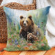 Mother Grizzly Bear Cub Flowers Painting Cushion