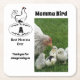 Rustic mother hen lovingly nesting on customised monogram egg. The photo of the hen with chicks is easy changed to your own momma photo or keep if your mother has ever smothered you with to much love. An idea thank you gift for a mum, grandma, wife, or like a mother that is a bit over protective. Additional text field below that says "Best Momma ever, thank you for loving us, all field of text is customisable. The "Momma Bird" is a good location for her name.