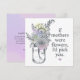 Mother's Day saying "if mothers were flowers i'd pick you" with wildflowers in mason jar card that any mother will love getting. Back of the card is watercolor purple splash, wildflowers and customizable message.