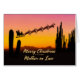 A Christmas card for your mother-in-law showing Santa flying over the desert. Lots of tall cactus are seen in silhouette. Wish a merry Christmas from the desert with a lovely sunset coloured card.
