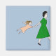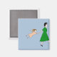 A little girl is literally airborne behind her mother as she pulls her along by the hand in the amusing design on this magnet. The woman is wearing a grass green floral dress and has dark curly hair. The child wears a pink dress with a yellow windowpane pattern and pink shoes. Her long, golden hair flies in the wind. The expression on her face is one of alarm and surprise. From my original digitally created mixed media image.