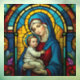 blue virgin mother mary,jesus christ stained glass,circular circle pattern,christian religious art,stained glass style art,traditional sacred holy communion,christianity penecost,religious woman religion tiling tiles,catholic church confirmation,young baby jesus child