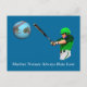 A woman batter, representing Mother Nature, hits a baseball-like globe of the Earth. Text reading "Mother Nature Always Bats Last" also appears. Causing changes in the environment can have unexpected, and unwanted, consequences. Choose your own background colour.