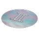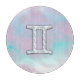 A mother of pearl like Gemini zodiac symbol on a soft pink and blue background. A modern fresh girly style design for a great custom birthday gift idea for her.