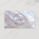 This elegant luxury business card features an iridescent peony mother-of-pear design and your monogram in an elegant handwritten script. The monogram, together with a circle and your name and profession in a sans serif font, are creating a logo. On the reverse side is a scannable qr code and a custom template for name, address and socials. This professional glam business card is perfect for salon, make up artists, jewellery and more.