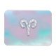 An Aries zodiac sign in mother of pearl style background. A modern fresh soft design for a great custom birthday gift idea.