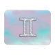 A mother of pearl like Gemini zodiac symbol on soft pink purple fuchsia background. A modern urban girly style design for a great custom birthday gift idea for her.