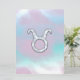 A mother of pearl nacre style Taurus Zodiac Symbol on a light pastel pink and blue print. A modern urban elegant design for a great custom gift idea.