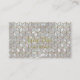 The background of this buisiness card is the image of a beautiful mother of pearl mosaic in a geometric cube pattern.