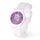 A mother of pearl Like Virgo Zodiac Sign on Digital Camouflage in pink purple and fuchsia background. A modern urban girly style design for a great custom fashion watch gift idea.
