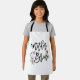 Script mother of the bride with purple flower bouquet.