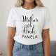 Wedding Mother of the Bride shirt features modern black swirling calligraphy script writing with elegant custom first name text that you can personalise. See our coordinating bridal party designs!