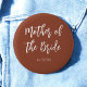 Mother of The Bride Wedding Button in Burnt Orange, Brown and White/ Terracotta. Good for Weddings, Bridal Party, Bachelor party Rehearsal Dinner. Check out more products with this design in the collection below.