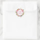 The sticker is made on wonderful paper and had no problem sticking to the bag that I purchased to put it on. I wanted to find a design that would be cute for the bride and groom and this one fit the bill as it has cute "bees" buzzing around and the wedding was taking place in a town called "Bee Cave". The packaging was great and protected the stickers. The website is easy to navigate and there are so many color choices. I had no problem finding a color that the bride was using on everything else selected. The design was adorable and there were many to choose from. You can make the figure as larger or smaller and you can place the photo and writting whereever you want to in the sticker. The printing is fabulous..better than expected.