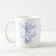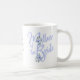 Personalised Mother of the Bride mug with floral letter design. The hand lettering has a dusty blue colour theme and is decorated with watercolor flowers. The design is ready for you to customise with the bride and groom's name as well as the wedding date. A lovely keepsake and perfect for favours as well as your bridal shower, bachelorette weekends, wedding rehearsals and the big day. Coordinating mugs are available for the bridesmaids and other members of the bridal party.