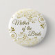 Beautiful button or badge to identify the mother of the bride at your rehearsal dinner, bridal shower or other wedding event. Features a simple chic design of gold filigree on a white background with elegant script lettering.