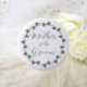 Round, pin-back button for the Mother-of-the-Groom at a wedding event that features a dark grey ivy wreath botanical design with stylised script in the same colour. Select your button size.