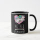 A sweet unicorn in flight graces this design, accentuated by a pink heart, shooting star, and a slogan which reads "Mother of unicorns!"