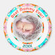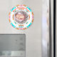 Pretty Circular Mother’s Day New Mam Mammy Baby Girl Boy Photo Gift Magnet. In spring and summer colors of pink, turquoise blue, purple, cream, green, and orange. A springtime and summertime round border surrounds the picture in the middle. Replace the photo with a picture of your own beautiful new baby boy or girl, or child. The text at the top says “Best Mammy Ever!” in Orange. At the bottom is the year, in green. Personalize this by changing the year. Give as a present for a new mom on Mother’s Day. Mama, mom, mam, mommy, mommy, and mother will love putting this gift magnet on their fridge to celebrate the birth of their new baby. In lovely, bright and light colors.