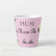 This gorgeous latte mug features hand painted Wild Roses and the editable text “ Mum, You Mean The World, To Me” on a pink background The perfect Mother’s Day gift.