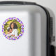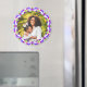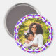 Pretty Circular Mother’s Day New Mom Mommy Baby Boy Girl Photo Gift Magnet. In colors of Pink, Purple and Green. A geometrical pattern vibrant colors, summer frame borders the picture. Replace the photo with a picture of your own wife along with your beautiful baby boy or girl, or child and children. Give as a present for a new mom on Mother’s Day. Mama, mom, mam, mammy, mommy, and mother will love putting this gift magnet on their fridge to celebrate the birth of their new baby. In lovely bright, bold, summertime colors.