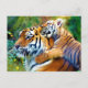 Mother Tiger with Baby Cub Climbing and Biting Ear Postcard