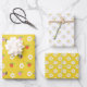 Cute wrapping paper for a bee themed baby shower or other occasion. Includes 3 coordinating designs, one with berries and bees and two shooets of simple daisy style flowers in white and golden yellow.