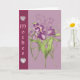 A mauve card with tulips and a couple of hearts,on a nice border on the side