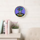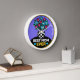 This unique, high-quality wall clock is vibrantly printed, protected by a high-impact plexiglass crystal face and features a pre-installed backside hanging slot for easy hanging and a non-ticking design.