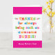 You call your grandmother Bubbie, not Grandma. (Bubbie means grandmother in Yiddish.) Imagine how excited Bubbie will be to receive a Mother's Day card addressed especially to her! Your bubbie also will love this card's fun, colourful text-based design that says "Thanks for always being such an awesome Bubbie! Happy Mother's Day!"