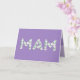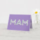 Mother's Day Card for Mam. You call your mother Mam, not Mum. (Mam means mother in Punjabi, Dutch, Welsh & Hindustani.) Imagine how excited Mam will be to receive a Mother's Day card addressed especially to her! Your mam also will love this card's beautiful floral design that says "Mam" written in small white flowers on the front, with a purple background, and "Happy Mother's Day!" written in small white flowers on the inside.