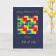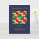 A Mother's Day card 'from All of Us' with a bright and colourful abstract patchwork design from cot-quilt by Judy Adamson.