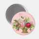A lovely vintage basket of flowers on a pink background to wish a Happy Mother's day. This refrigerator magnet will be a beautiful year round reminder of her special day.