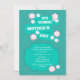 A modern Mother's Day invitation featuring a teal, chevron background with overlaying message tags and pink and white flowers.