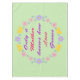 This awesome tablecloth features a selection of pretty flowers, including pale and bright pink bicoloured Cosmos, pink Daisies, pale purple Chrysanthemums and blue forget me not blooms and yellow butterflies forming a circle around some pretty writing in purple and pink that says "Only a Mother knows how Love Grows". A lovely design for celebrating a Mother.