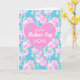 A pretty, floral greeting card to send your mother, with a pattern of 'lipstick-pink' roses on a sky blue background. There is a large, pink heart in the center with 'HAPPY Mother's Day MOM!' in a mixture of fonts in white, with tiny sky blue and white hearts in the three corners of the big, pink heart. The inside message is just a suggestion and you can easily change it or delete if you wish.