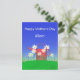 Postcard for Mother's Day with my digital artwork of a bright red watering can on green grass with daisies and a blue sky. Customisable text says "Happy Mother's Day Mum".