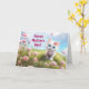 For any mom, a cute Happy Mother's Day card with a darling white kitten in a whimsical scene of flowers and hearts and customizable text too.