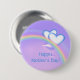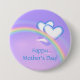 Button with my original design of a rainbow and two white and blue hearts in a purple sky. Text says "Happy Mother's Day!"