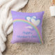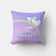 Throw pillow with my design of two white and blue hearts over a rainbow in a purple sky. Text says "Happy Mother's Day".