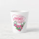 This latte coffee mug is shown with a Happy Mother's Day wish with flowers.