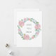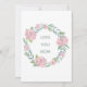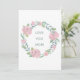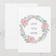 This simple Mother's Day card has a pretty floral wreath design with pink roses and blue green foliage in watercolor. In the centre is written "Love you Mum" in matching blue green sans serif font. On the reverse is the same design in miniature in the centre.