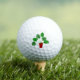 This awesome golf ball features a digital art image of a series of leaves from a houseplant called a Monstera, also known as the Swiss Cheese Plant. The leaves are dark green and lobed and some have holes in them. The plant pot is red and contains some brown soil.