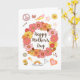 This unusual heartfelt Mother's Day greeting card is full of 1960s retro symbols: a pretty central floral wreath surrounded by a peace sign, hearts, a dove, etc., all in soothing hues of pink, yellow, brown, and orange. The inside text says, "Wishing you all the peace and love in the world on this Mother's Day and always."