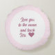 Mother's day round pillow with a purple flower wreath, pink and white. Easily personalise the text on both sides or leave some of it blank. - Kate Eden Art