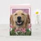 Mothers Day - Pink Tulips - Golden Retriever Card