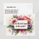 Congratulate your mum with this beautiful postcard featuring a hand-drawn bouquet of flowers and the message "For the Best Mum in the World". Perfect for Mother's Day or any occasion to show your love and appreciation.